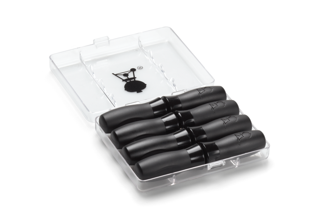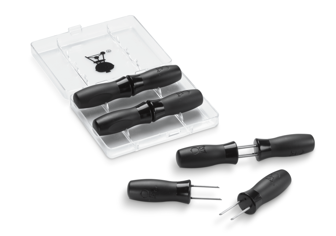 Färska, grillade majskolvar med smör är ett måste för en komplett grillbuffé. Setet med majshållare innehåller åtta kraftiga stickor med nylongrepp som gör det lätt att hantera och bre smör på de grillade kolvarna.