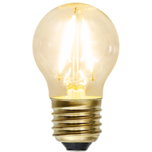 Dekorativ ljuskälla med vit glaskupa och 3-stegs klickdimring! Ljusstyrkan ändras enkelt genom slå av och på strömbrytaren. Välj mellan 31lm, 100lm eller 210lm. Ljusfärgen är 3000K och den har E27-sockel. Startar alltid på lägsta ljusstyrka.